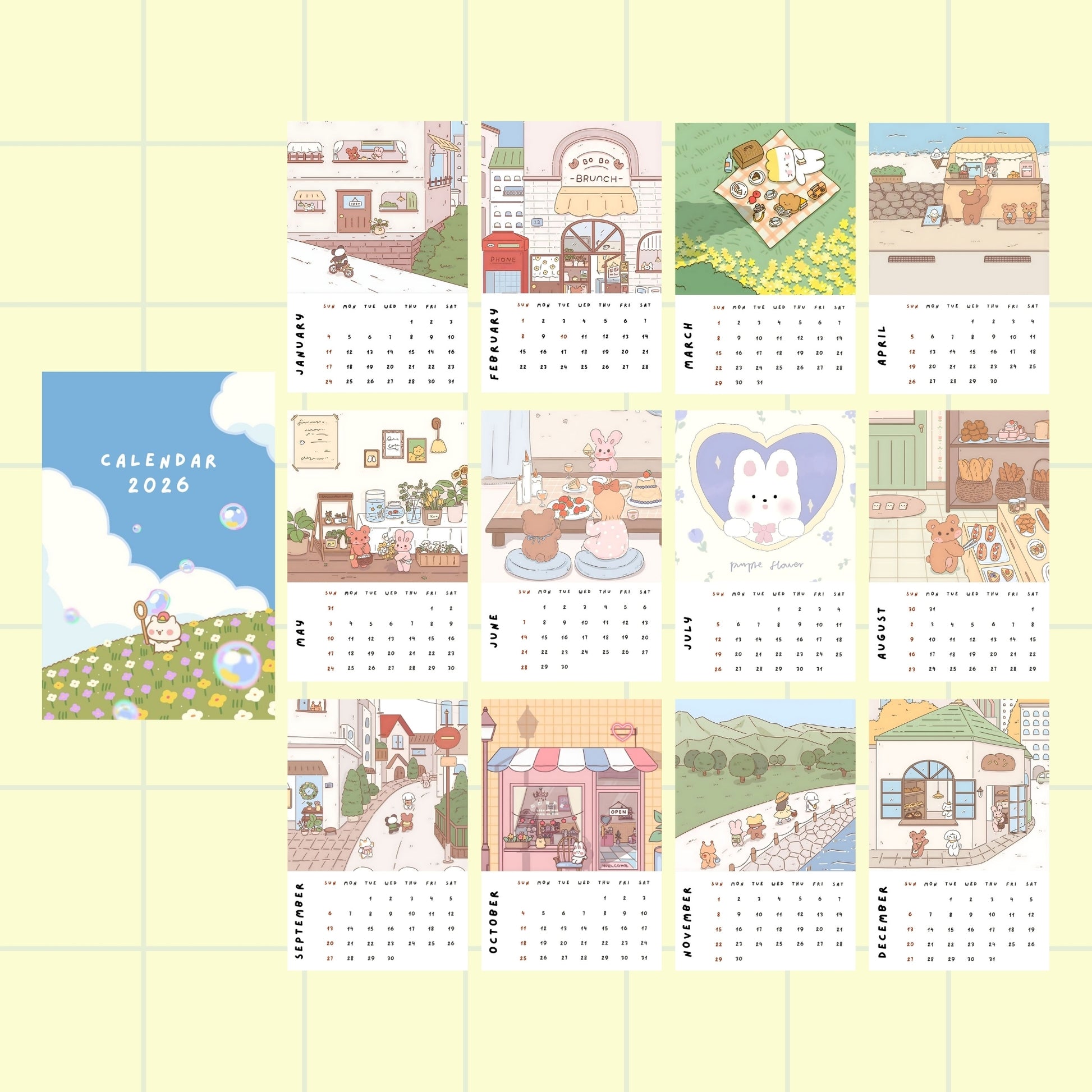 Kawaii 2026 Desk Calendar — Mini Poster Style